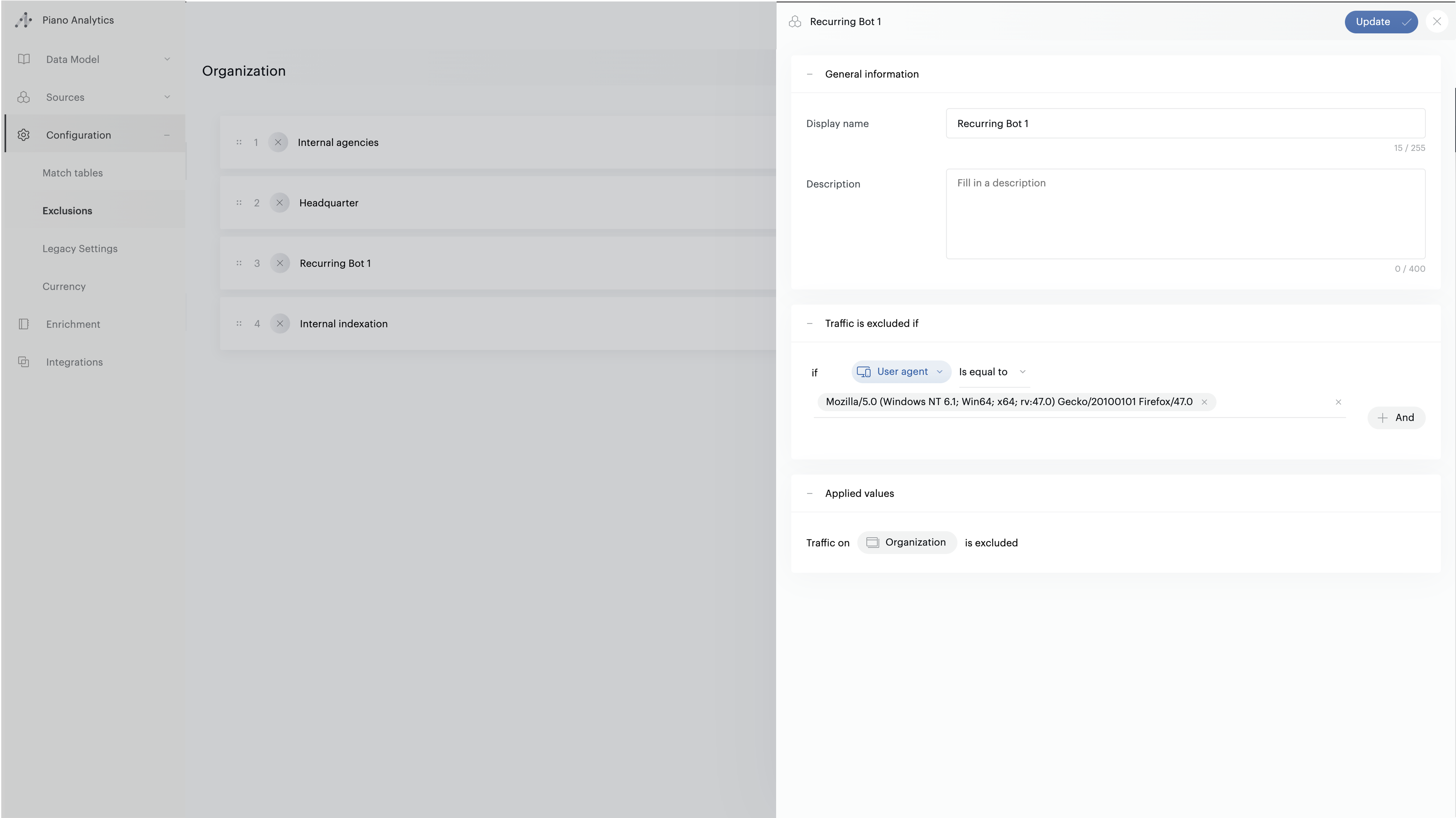 The exclusion configuration allows you to exclude traffic that is not relevant to you or that could distort your analyses when integrated into your data.
