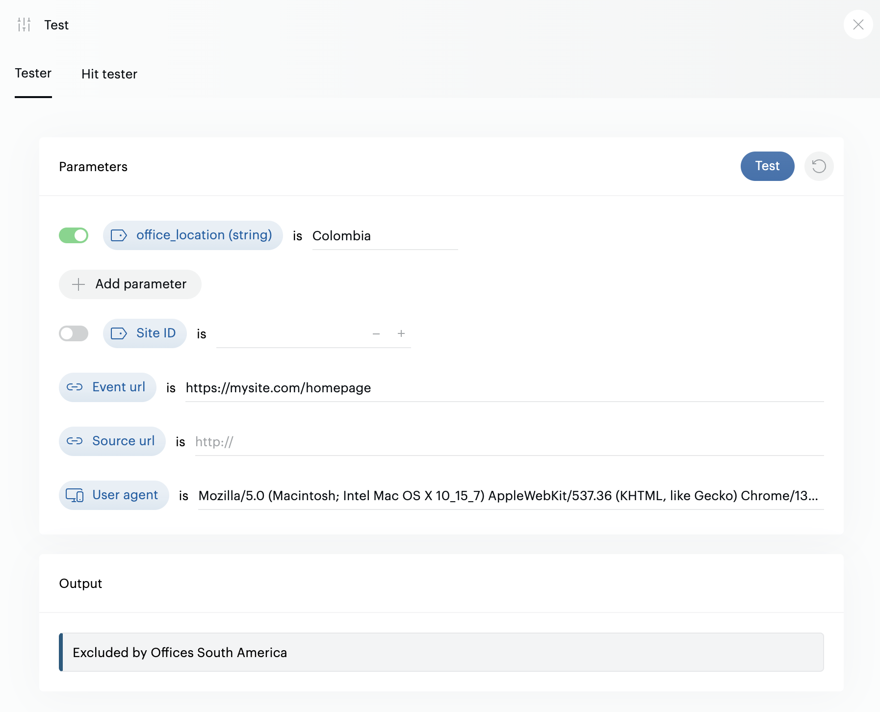 You can test your exclusion rules from the interface by clicking the "test" button in the top right corner of the screen: