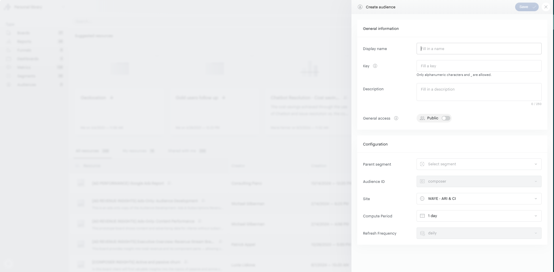 Refresh frequency: It corresponds to the moment when the audience will be refreshed, as a first step it is only daily.