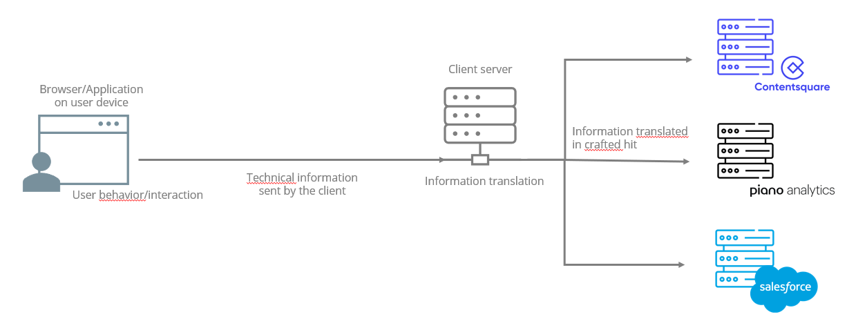 In order to bypass adblockers, it is important to send data in raw format to the client’s server; data must not take the format of Analytics events. You will then have to translate it into a language that our server can understand using POST HTTPS requests from our Collection API.