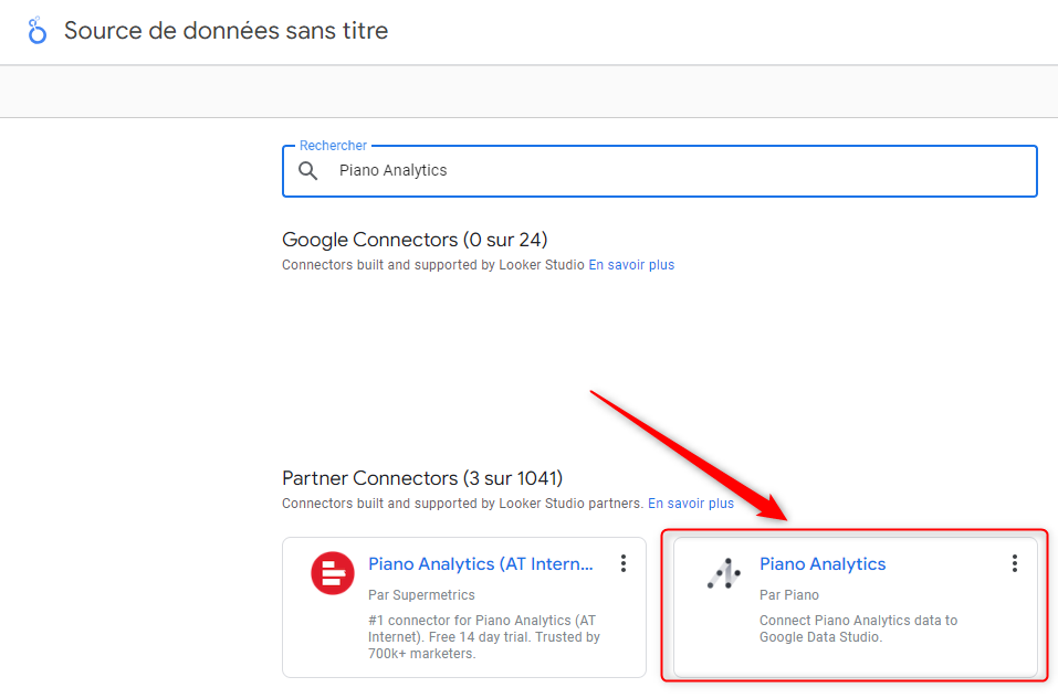 In order to enable the connector, you must select the Piano Analytics data source in Looker Studio. You must go to the Google platform via this address - https://lookerstudio.google.com/.