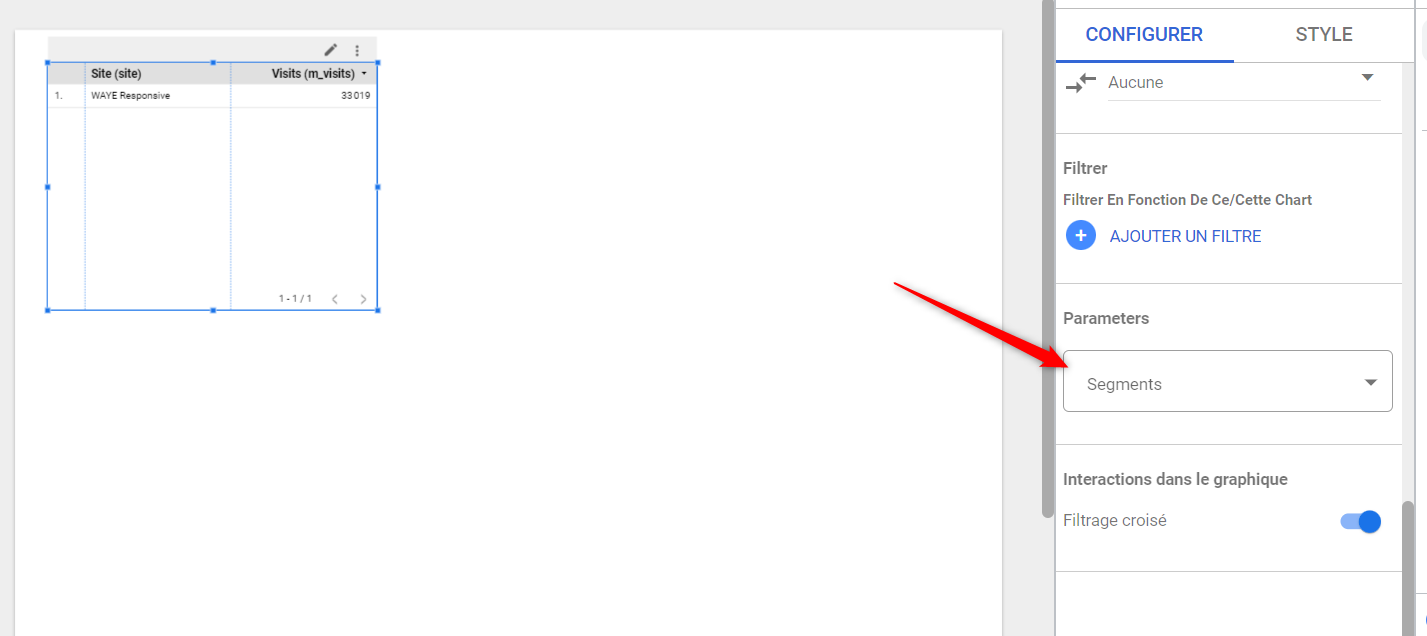 To apply one of your segments to a box in your report, scroll down your box's configuration menu to the “Parameters” section. The selector contains all your Piano Analytics segments: