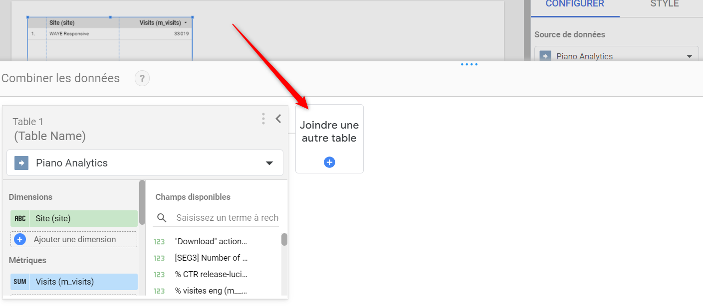 For information in Looker Studio you can add charts from different sources in the same Dashboard (multiple Piano Analytics sites and other sources). You must go to the right side of the screen to edit / add a data source.