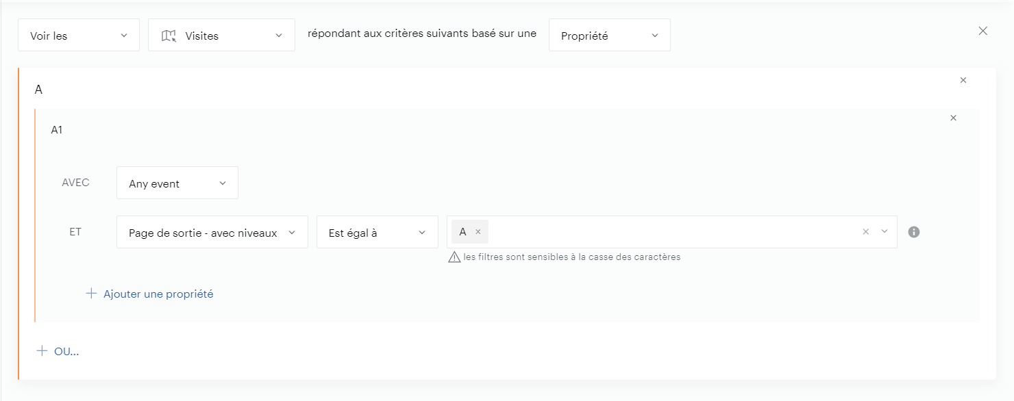 Attention, ce type de métrique personnalisée n'est exploitable que pour une seule page. Il faudra donc construire deux segments et une métrique personnalisée pour chaque page afin d'obtenir son taux de sortie.