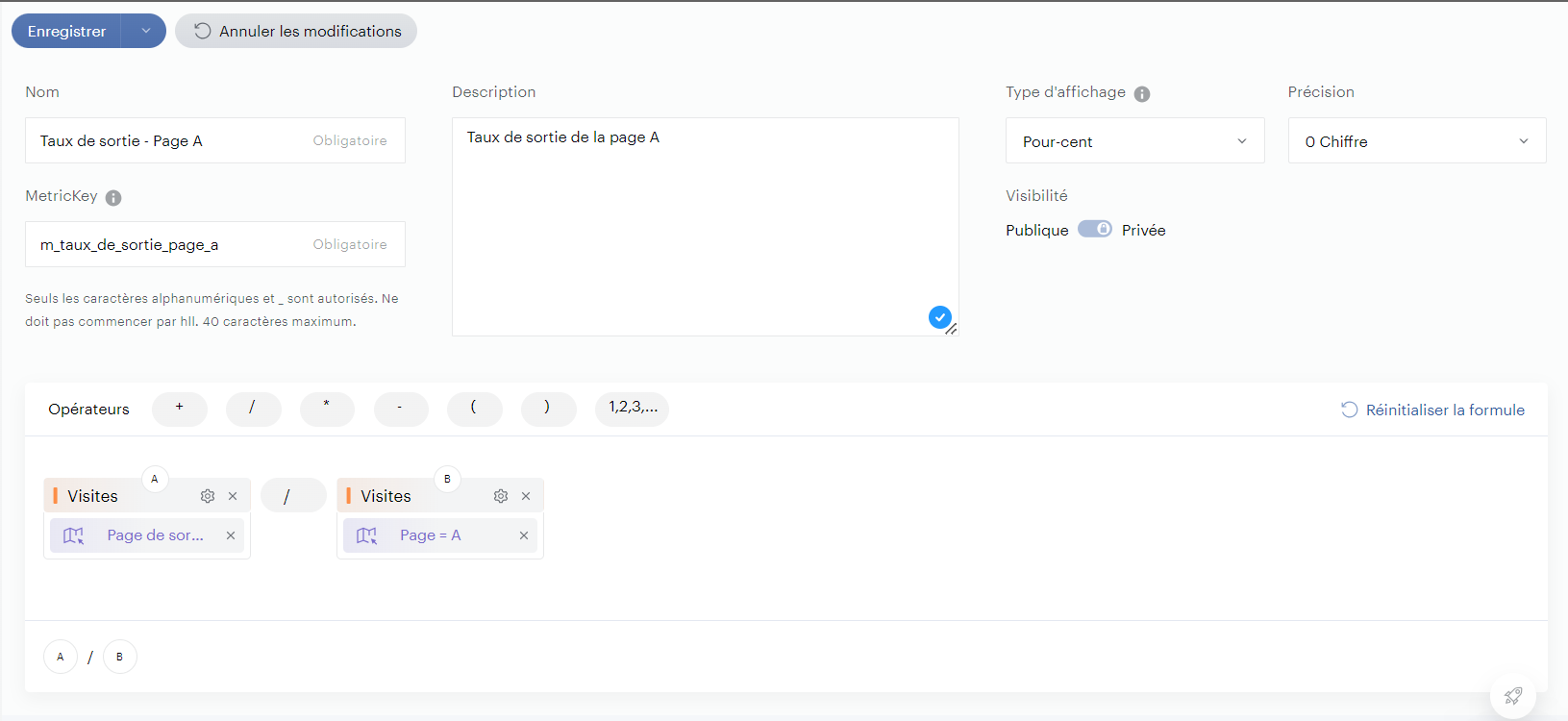 Une fois les segments configurés, il faut créer la métrique personnalisée :