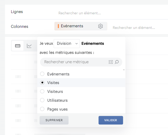Choisissez ensuite "Division" et la métrique de votre choix avant de valider :