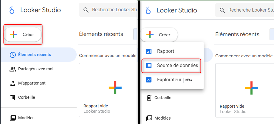 Afin d’activer le connecteur vous devez sélectionner la source de données Piano Analytics dans Looker Studio. Vous devez donc vous rendre sur la plateforme Google via cette adresse - https://lookerstudio.google.com/.