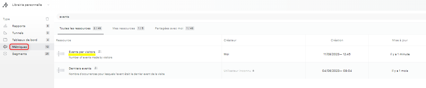Suite à la sauvegarde, cette métrique est disponible dans vos ressources Piano Analytics :