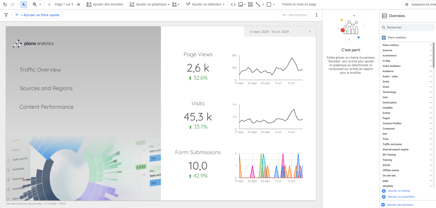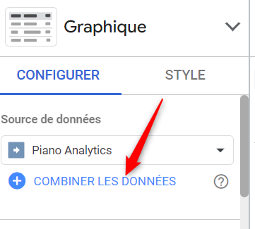 Pour information dans Looker Studio vous pouvez afficher des graphiques provenant de différentes sources dans le même Dashboard (plusieurs sites Piano Analytics et d’autres sources). Vous devez vous rendre dans la partie droite de l’écran pour éditer/ajouter une source de données.
