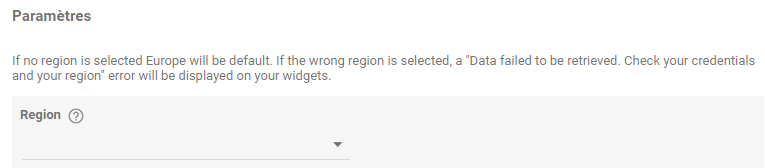 En cas de mauvais choix de région, les widgets de votre board Looker afficheront un message d'erreur "Data failed to be retrieved. Check your credentials and your region".