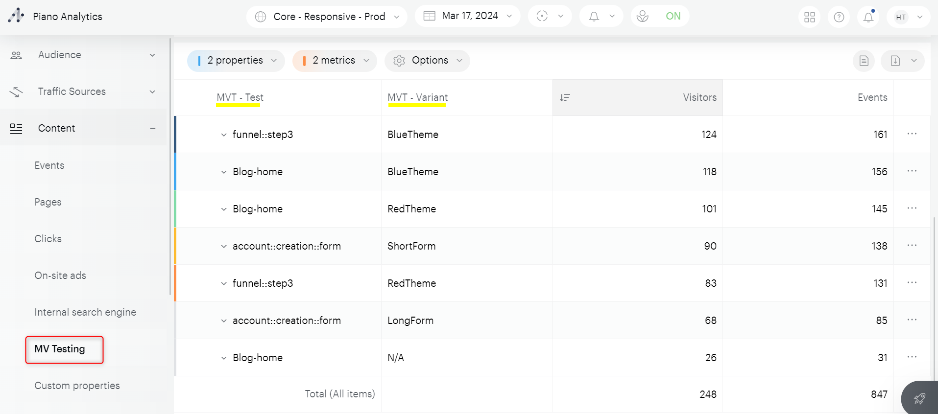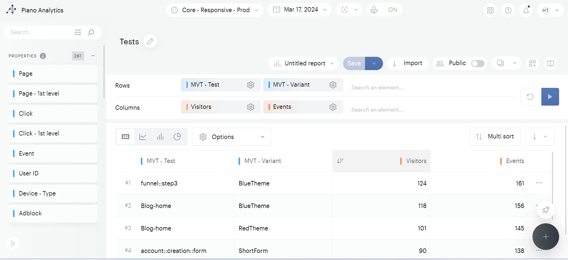 propriétés : mv_test (nom du test mesuré), mv_creation (nom de la variante de test)